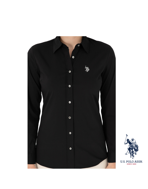 US Polo black shirt with silver buttons